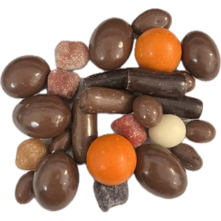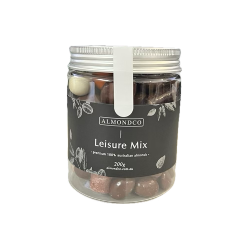 Leisure Mix - The Chocolcate Lovers Delight, Delicious Milk Chocolate almond, Chocolate Licorice, Chocolate Peanuts, Chocolate Sultanas With The Iconic Orange Yogurt Fruit Ball.